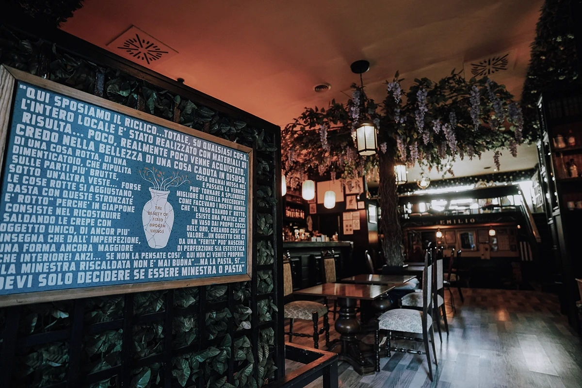 Emily nasce dal recupero: materiali di scarto, porte, finestre e oggetti dimenticati tornano a vivere con una nuova funzione.